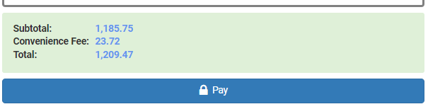 If you choose to not have Convenience Fees, the fee or the fee option will not show at all. Only the value due will show at checkout: