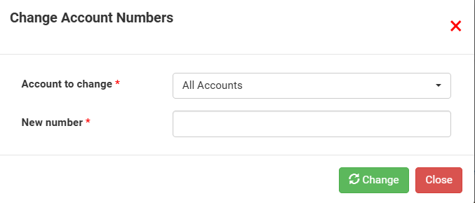 In the “New Number” field, enter the new account number and click Change.